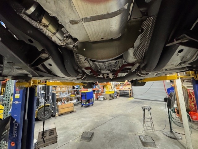 • Custom exhaust system with cross pipes and mufflers to meet 91 decibels sound.